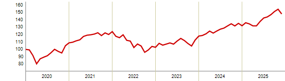 Fund indexed performance (initial value =100%). Performance statistics are based on offer-bid prices of the fund with dividend reinvested, in fund class currency