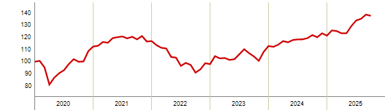 Fund indexed performance (initial value =100%). Performance statistics are based on offer-bid prices of the fund with dividend reinvested, in fund class currency